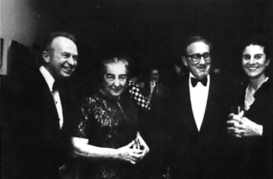 Ambassador and Mrs. Rabin with Prime Minister Golda Meir and Dr Henry Kissinger during Mrs Meir;'s first state visit to Washington in 1969.
